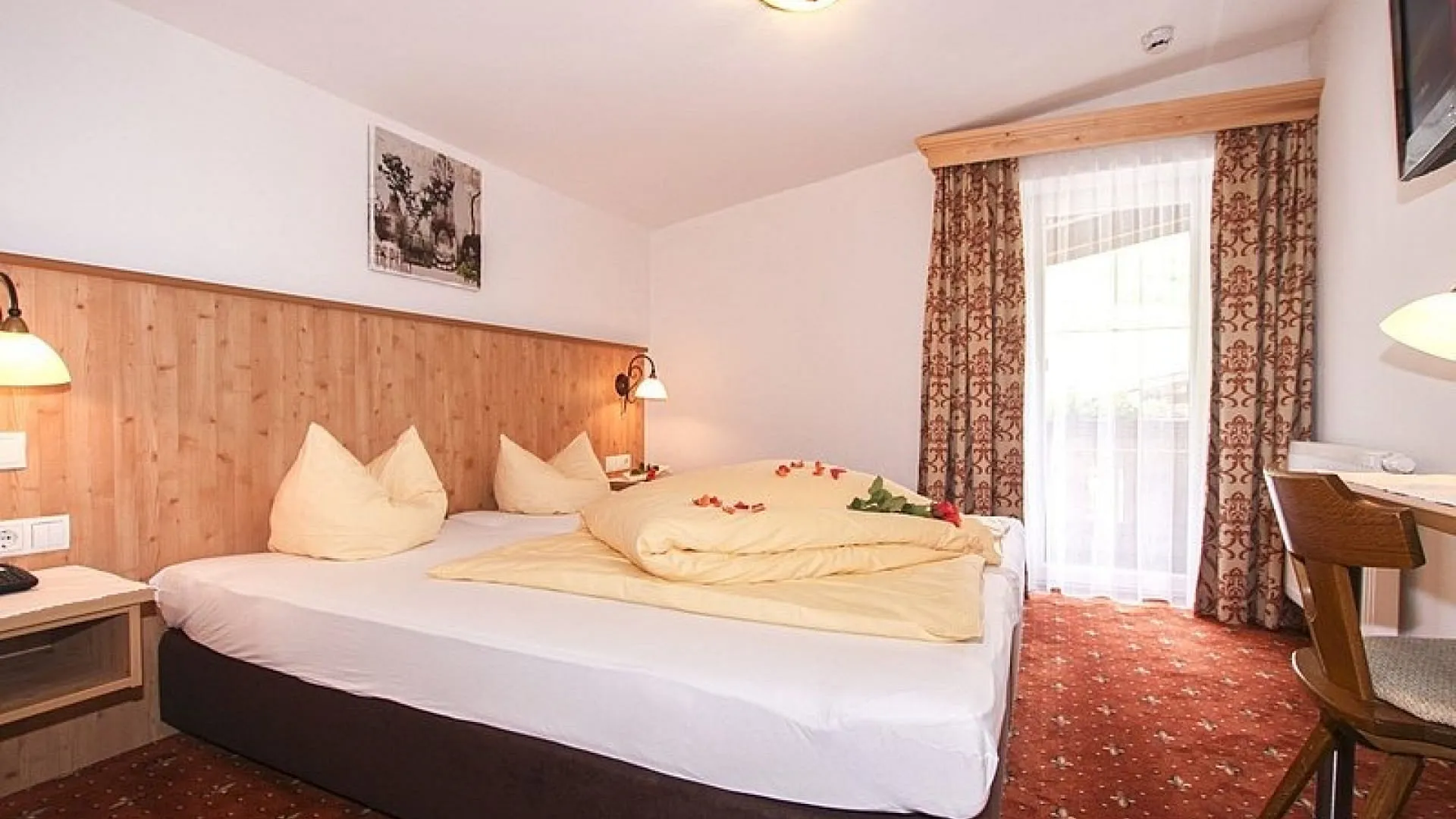 Alle Zimmer sind ausgestattet mit Bad und WC, Haarfön, Radio, Farb-TV (Kabel), Telefon und teilweise mit Balkon. Unsere großzügigen Suiten haben eigene Schlaf- und Wohnbereiche.